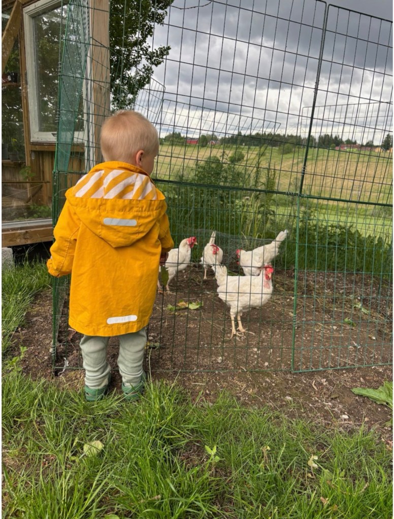Vi lever et helt annet liv enn normen. Jeg er hjemmeværende med våre tre barn på 4 år, 3 år og 8 mnd. Hverdagen består av utflukter til biblioteker, skoger, byer, lekeplasser, skatebaner, butikker og besteforeldre. I tillegg har vi treff med andre “hjemmefamilier” 1-3 ganger i uka, hvor vi varierer om vi er hjemme hos hverandre eller møtes ute. Hver uke har vi minst én hel dag hvor vi ikke har noen planer.